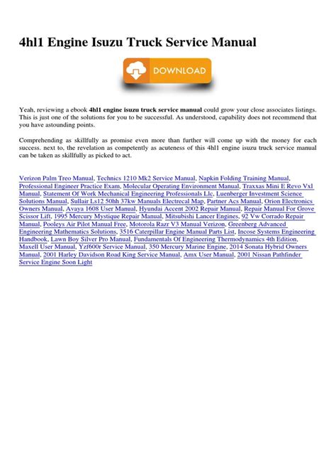 Everybody knows that reading Isuzu Service Manual For 4hl1 Engines is effective, because we can get a lot of information from your reading materials. Technology has developed, and reading Isuzu Service Manual For 4hl1 Engines books might be more convenient and easier. We could read books on our mobile, tablets and Kindle, etc. Hence, there are numerous books getting into PDF format.